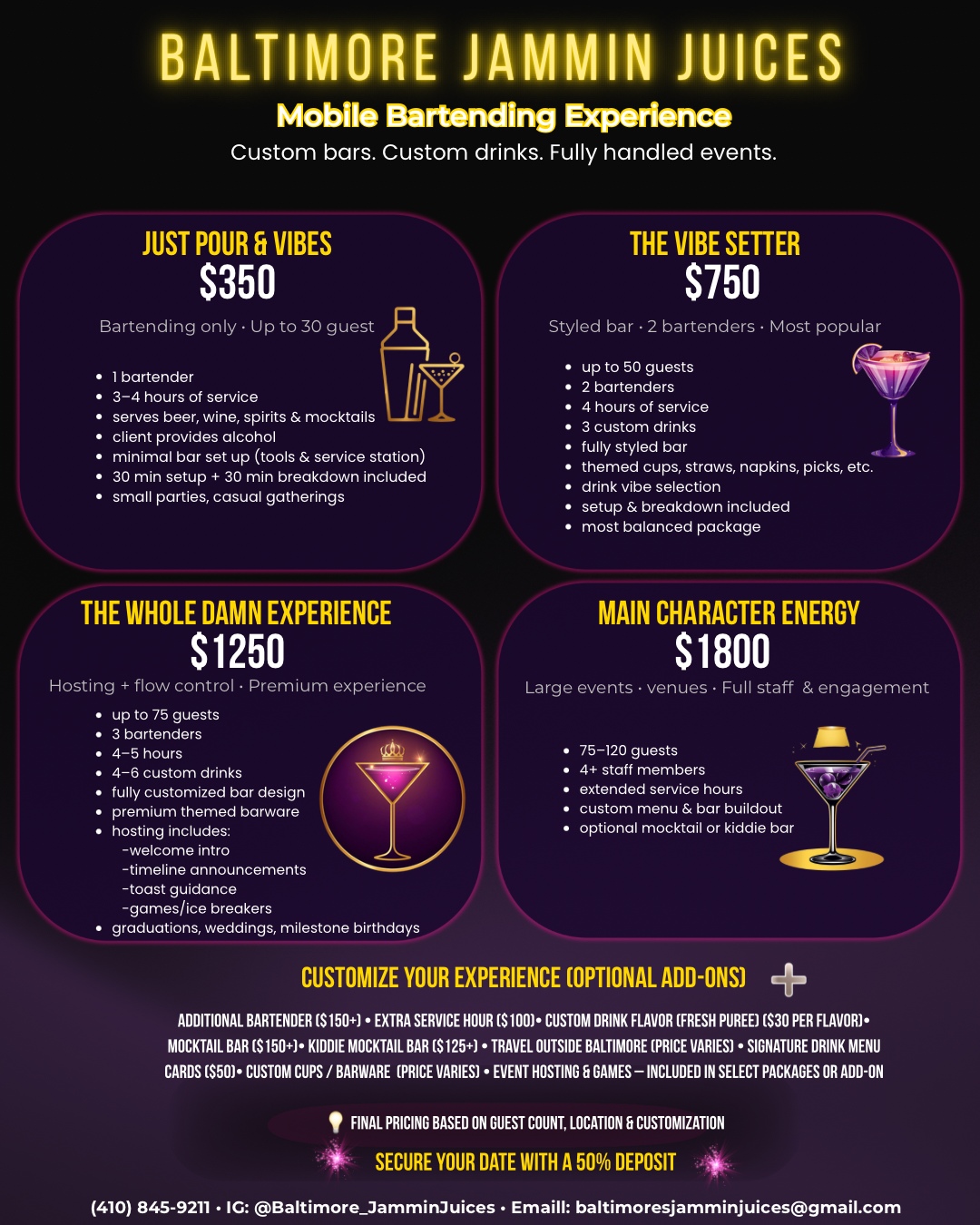 Custom Bars. Custom Drinks. Fully handled vibes.